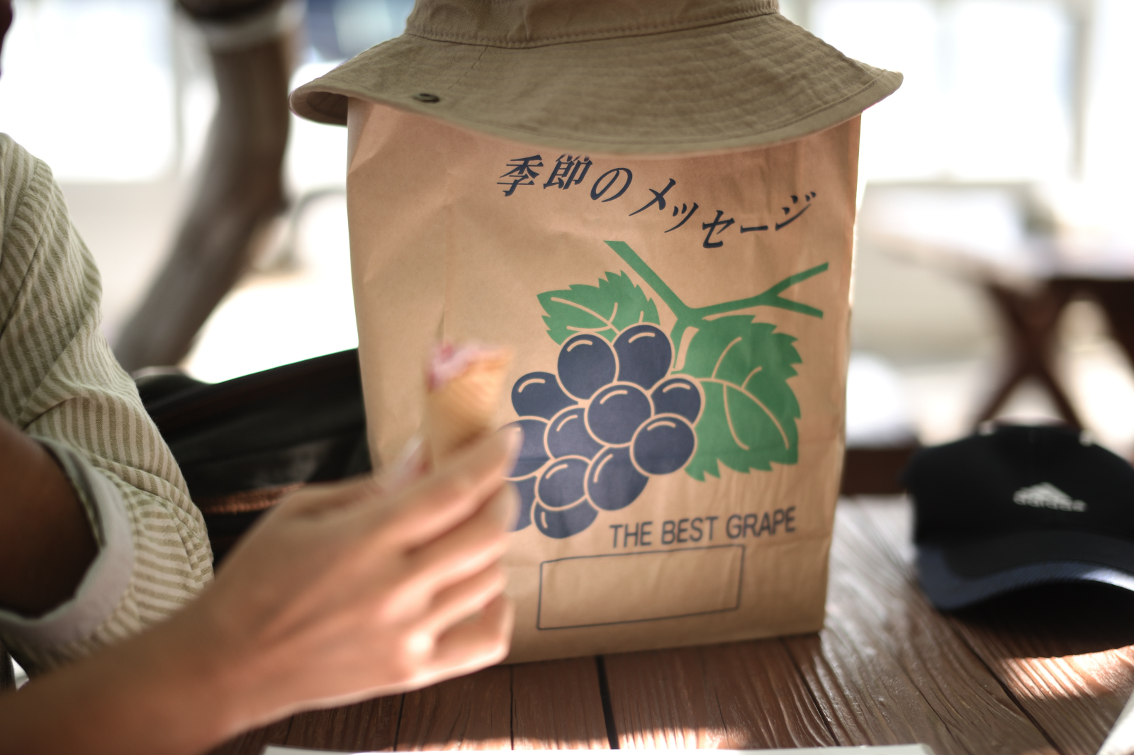 つむぎがものすごくくだもの好き。誕生日にぶどう狩りがしたい、というのでずいぶんタイミング遅くなってしまったけれど、台風の過ぎたお休みに、きょう、行ってきました。